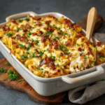 Cheesy chicken and bacon pasta bake is the kind of comforting, oven-baked meal that brings everyone to the table. It combines tender chicken, smoky bacon, perfectly cooked pasta, and a rich, creamy cheese sauce baked until bubbly and golden. This is one of those recipes I turn to when I want something filling and reliable that still feels special. The bacon adds depth and saltiness, the chicken keeps it hearty, and the cheese ties everything together into a dish that feels indulgent without being complicated. It is ideal for busy weeknights, casual family dinners, or make-ahead meals that reheat beautifully. If you enjoy cozy casseroles with bold flavor and minimal effort, this cheesy chicken and bacon pasta bake deserves a spot in your regular rotation.
