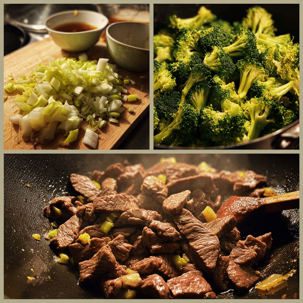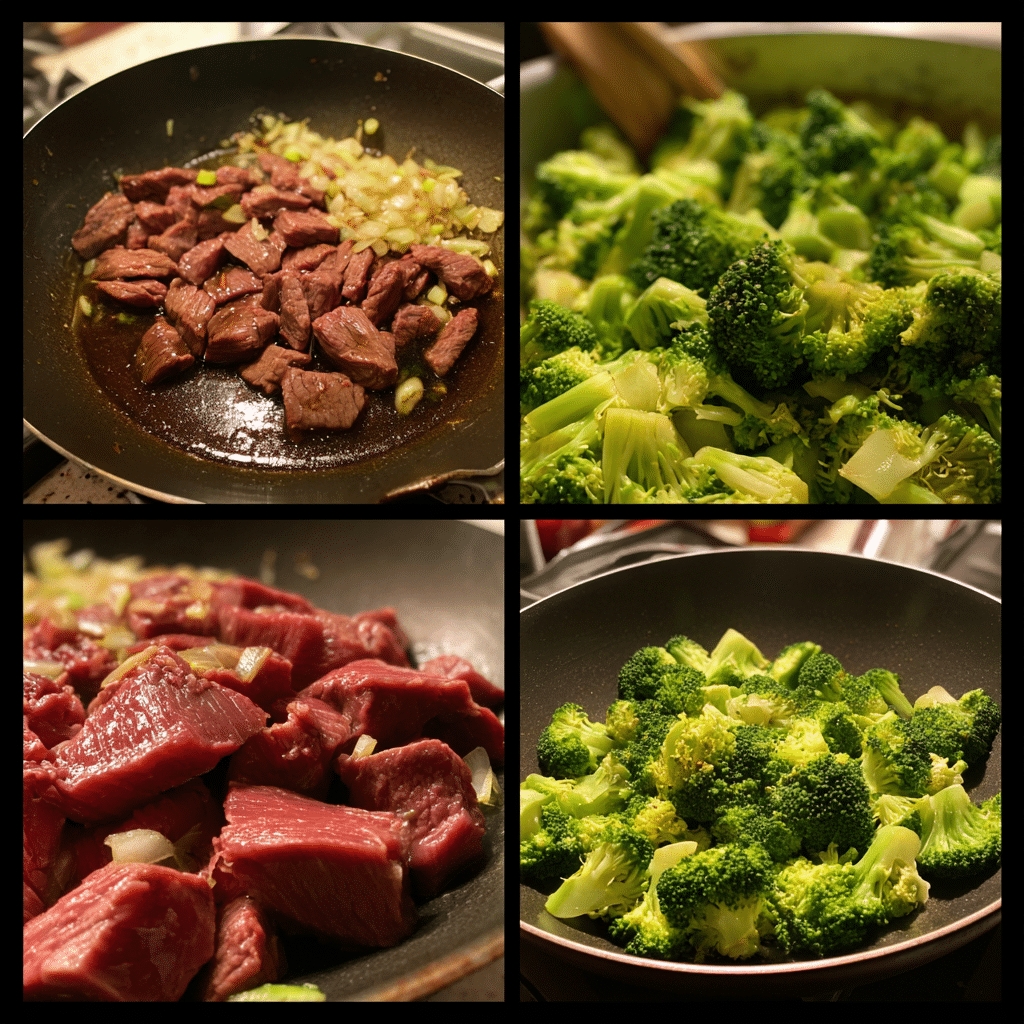 In the same pan, add a bit more oil if needed, then sauté garlic and ginger until fragrant. Return the beef to the pan along with the broccoli.