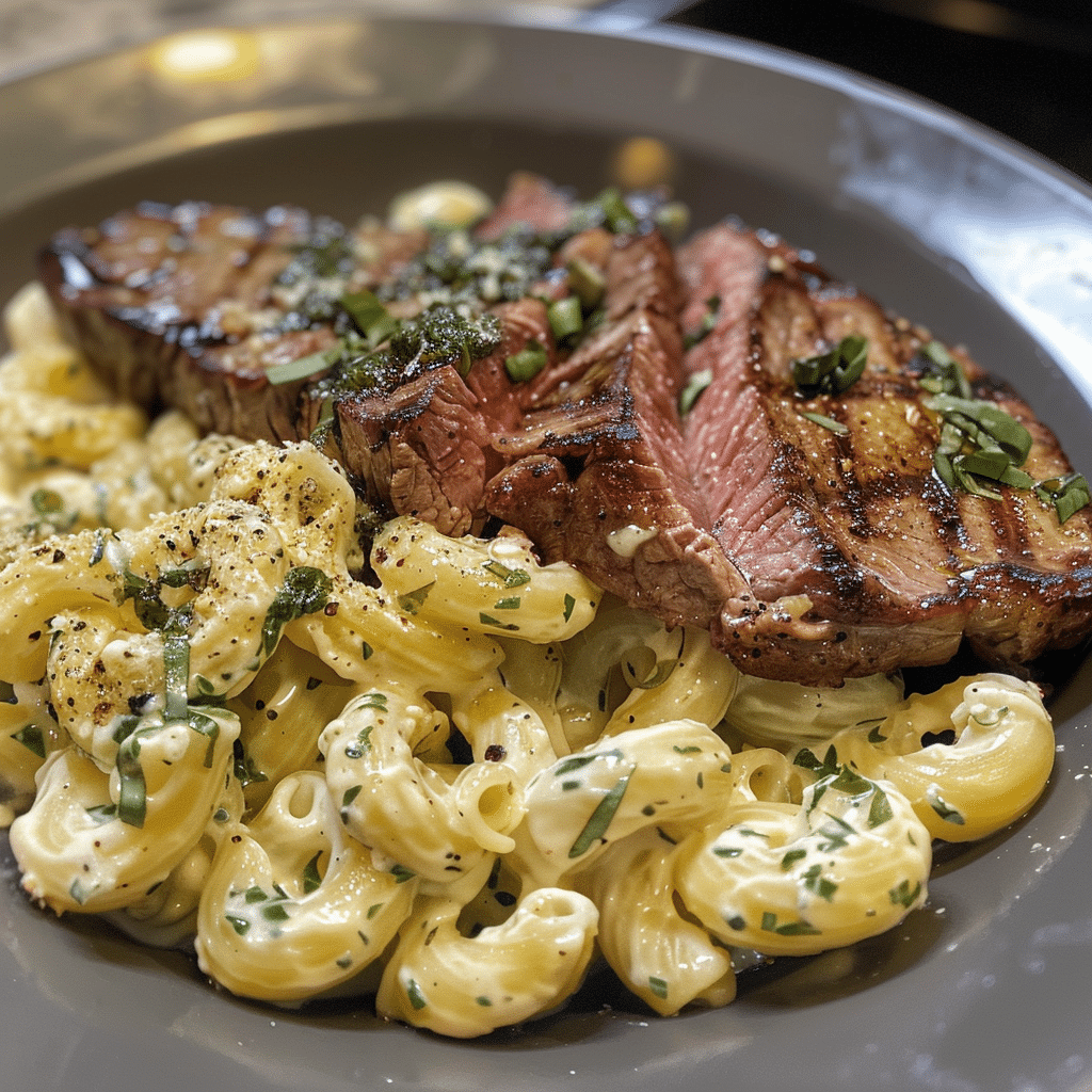 Begin by cooking your pasta in a large pot of salted boiling water until al dente. Reserve a bit of pasta water before draining to adjust the sauce later if needed. While the pasta cooks, season the steak generously with salt and pepper. Heat olive oil in a skillet over medium-high heat, then sear the steak on each side until browned. Remove the steak and let it rest before slicing into thin strips.