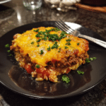 A hearty and comforting hamburger rice casserole made with seasoned ground beef, tender rice, and melted cheese. This easy one-dish dinner is perfect for busy weeknights and family meals.