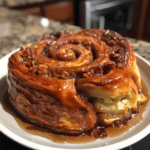 A Giant Gooey Cinnamon Roll is the kind of indulgent, bakery-style treat that instantly turns an ordinary morning into a celebration. Soft, buttery dough spirals around layers of cinnamon sugar, melting into a gooey centre while the outside bakes into a golden, tender crust. This oversized roll is perfect for sharing—though you may not want to. One thing I appreciate about this recipe is its flexibility; when I once ran out of regular milk, I used almond milk for the dough, and the rise and texture still came out beautifully soft. Whether you serve it warm from the oven on a weekend morning, bring it to brunch, or make it for a holiday breakfast, this cinnamon roll guarantees sweet aromas, impressive presentation, and unforgettable flavour.