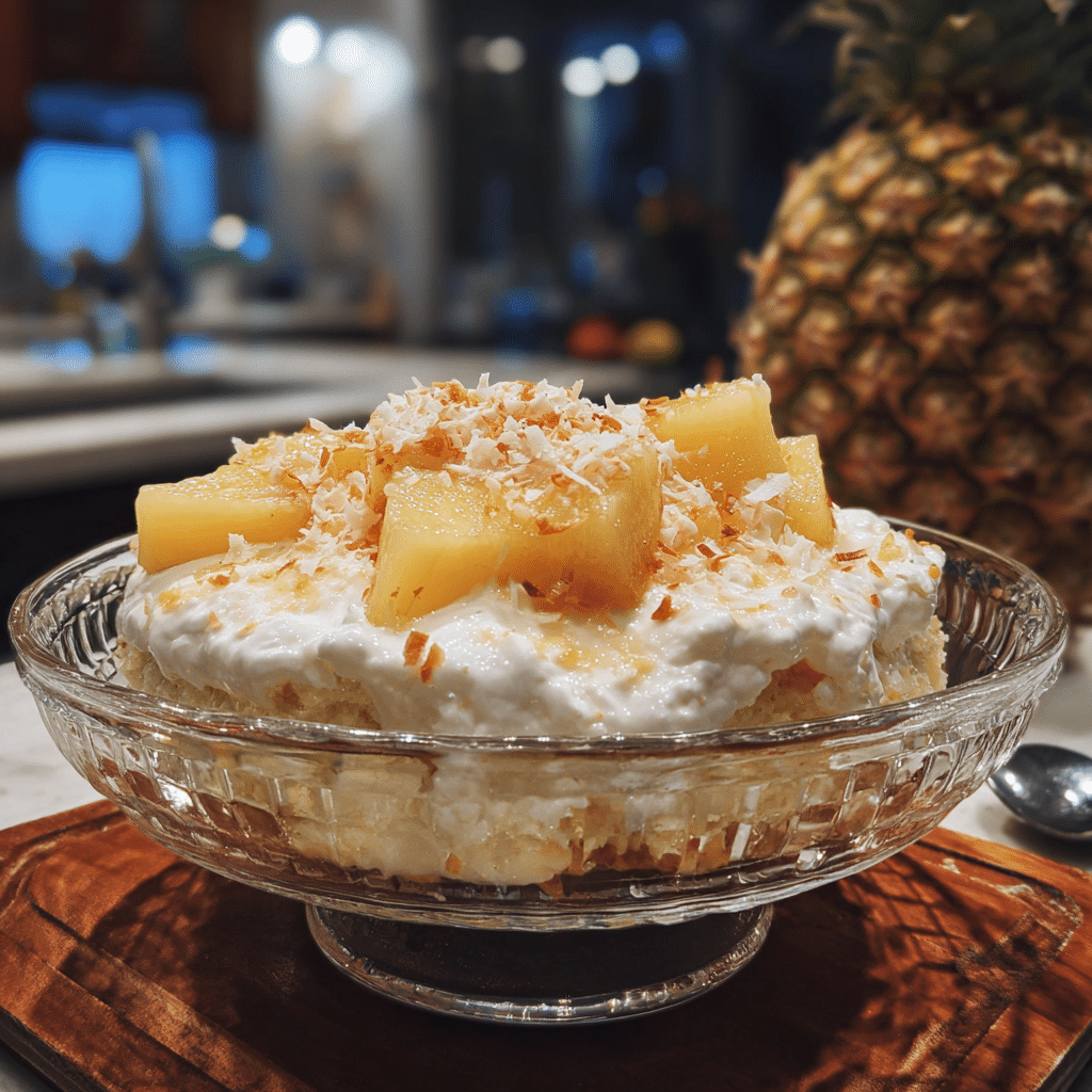 Hawaiian Pineapple Coconut Fluff – A Creamy Tropical No-Bake Dessert