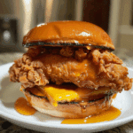 The Jalapeño Honey Drenched Crispy Fried Chicken Sandwich is everything you want in comfort food — crispy, juicy, sweet, and spicy all at once. Each layer adds its own charm, from the tender chicken to the sticky honey glaze. Whether served at a backyard cookout or as an indulgent weeknight meal, this sandwich guarantees pure satisfaction and a little kick that keeps you coming back for more.