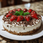 No-bake peppermint cheesecake is the perfect holiday dessert — smooth, creamy, and bursting with cool peppermint flavor. It’s light yet indulgent, with a buttery cookie crust and a fluffy peppermint filling that melts in your mouth. Best of all, there’s no oven required, making it the easiest way to impress your guests during the busy festive season. I once made this with a chocolate cookie crust instead of graham crackers, and it gave the cheesecake a delightful mint-chocolate flavor that reminded me of peppermint bark. This dessert is refreshing, festive, and absolutely stunning when topped with crushed candy canes — a must-have for Christmas celebrations or winter gatherings.