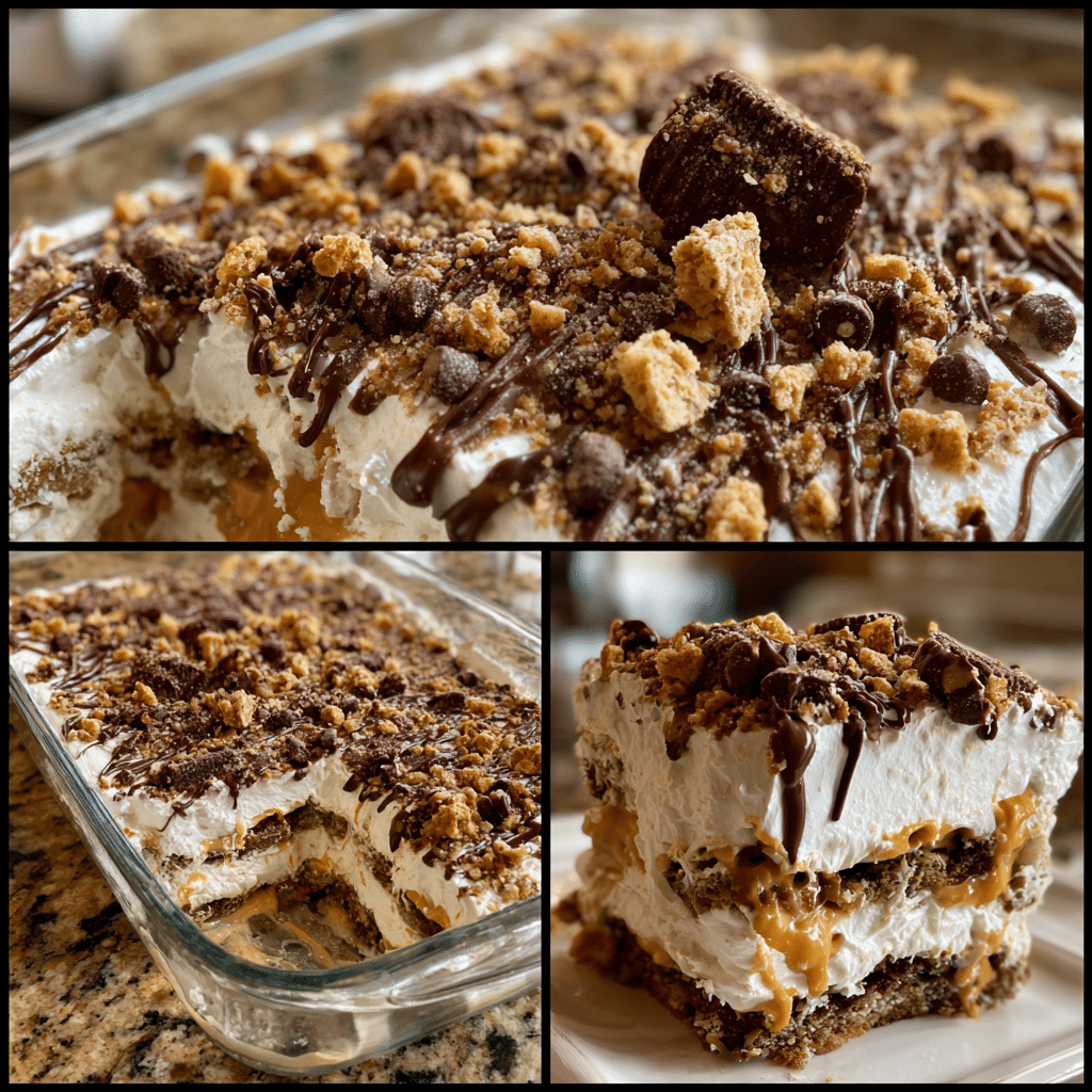 A rich and indulgent no-bake Peanut Butter Crunch Lasagna layered with chocolate cookie crust, creamy peanut butter filling, chocolate pudding, and crunchy toppings. Perfect for parties and peanut butter lovers.