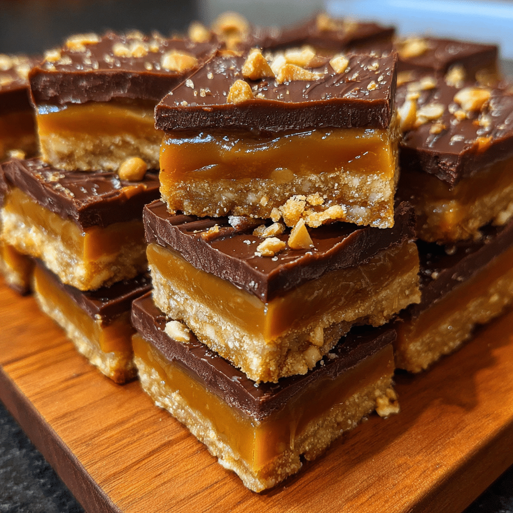 Store the bars in an airtight container at room temperature for up to 3 days or refrigerate for up to a week. For longer storage, freeze the bars for up to 2 months, separating layers with parchment paper. Let them thaw at room temperature before serving. Avoid reheating, as the caramel and chocolate layers can melt unevenly.