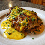 Pretzel Chicken with Mustard-Cheddar Sauce is a bold, comforting dish that transforms everyday ingredients into something extraordinary. The crispy, salty pretzel coating pairs perfectly with the smooth, tangy cheese sauce, making each bite a delicious mix of texture and flavor. Whether you’re cooking for family or entertaining guests, this recipe feels like a special occasion meal without the hassle. Serve it hot, drizzle generously, and enjoy a dish that’s equal parts cozy comfort and crave-worthy indulgence.