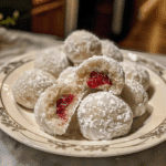 Raspberry-Filled Almond Snowball Cookies are a delightful blend of elegance and comfort — buttery, nutty, and dusted with a touch of sweetness. The surprise raspberry center adds a burst of flavor that makes each bite unforgettable. Whether you’re baking for the holidays, gifting to friends, or simply treating yourself, these cookies bring festive charm and timeless flavor to any occasion. Simple, stunning, and irresistibly delicious — they’re little snowballs of pure joy.