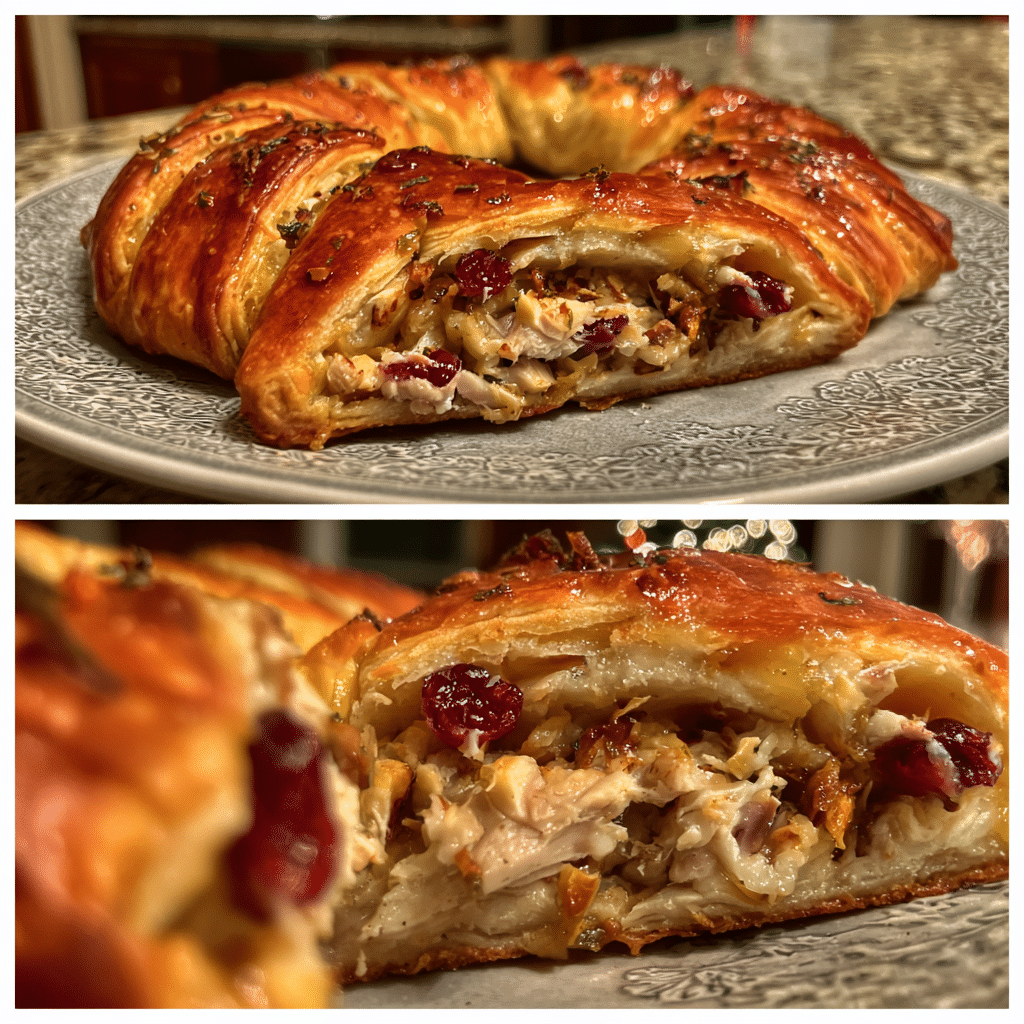 Savory turkey and cranberry crescent ring is one of those holiday appetizers that looks impressive on the table yet requires very little effort in the kitchen. I often turn to this recipe when I want something warm, comforting, and festive without spending hours preparing multiple dishes. The combination of flaky crescent dough, tender turkey, creamy cheese, and tangy cranberry sauce captures classic holiday flavors in a form that is easy to serve and universally loved. It works equally well for Christmas gatherings, Thanksgiving leftovers, or casual winter parties. What I appreciate most is how flexible this recipe is. You can adjust the filling based on what you have on hand, and it still turns out delicious every time. When baked, the crescent ring becomes golden and crisp on the outside while staying rich and savory inside. Served warm from the oven, it quickly becomes the centerpiece of any appetizer spread and disappears faster than expected.