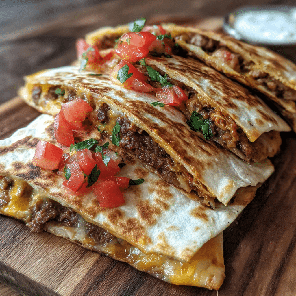 For a cheeseburger-inspired twist, add shredded lettuce and tomatoes after cooking for freshness and crunch. If you prefer a spicier profile, mix hot sauce into the burger sauce or use pepper jack cheese. These quesadillas also pair well with dipping sauces such as extra burger sauce or a mild chipotle mayo.