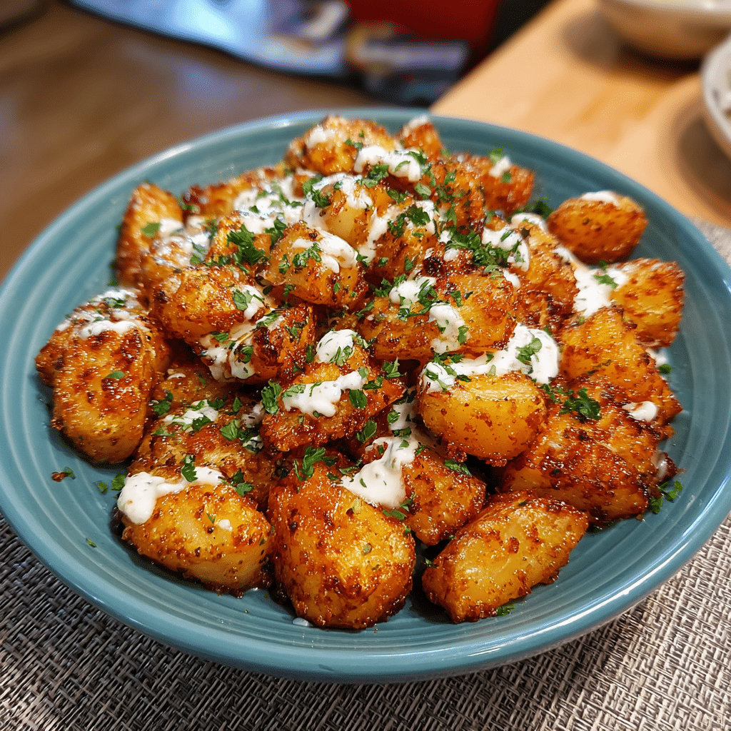 Crispy seasoned potatoes served with a creamy, tangy cheese sauce inspired by Taco Bell Fiesta Potatoes, made even better at home.